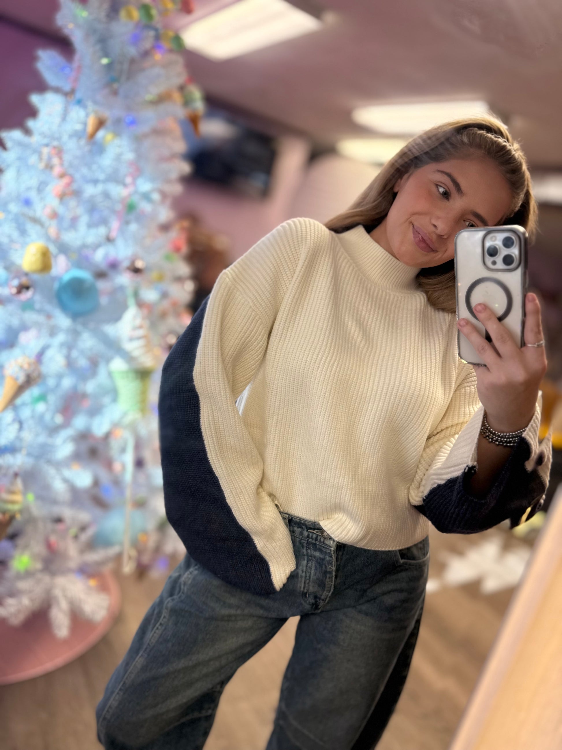 Stay cozy and stylish with our Two-Toned Turtleneck Sweater. This chic piece features a classic turtleneck design with a modern twist, showcasing two complementary colors that create a striking contrast. Made from soft, high-quality fabric, this sweater offers both warmth and comfort, perfect for layering or wearing on its own. The relaxed fit and versatile style make it an ideal choice for any occasion, whether you're dressing up for a night out or keeping it casual for a day at the office. Elevate your wardrobe with this timeless yet contemporary sweater.